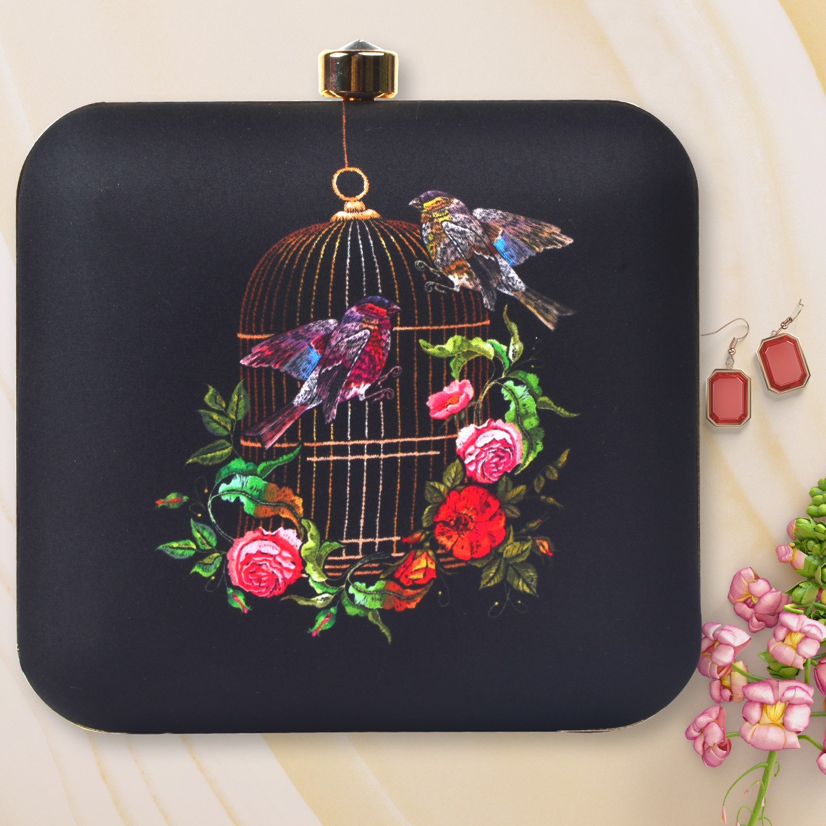 Birds Cage Print Clutch